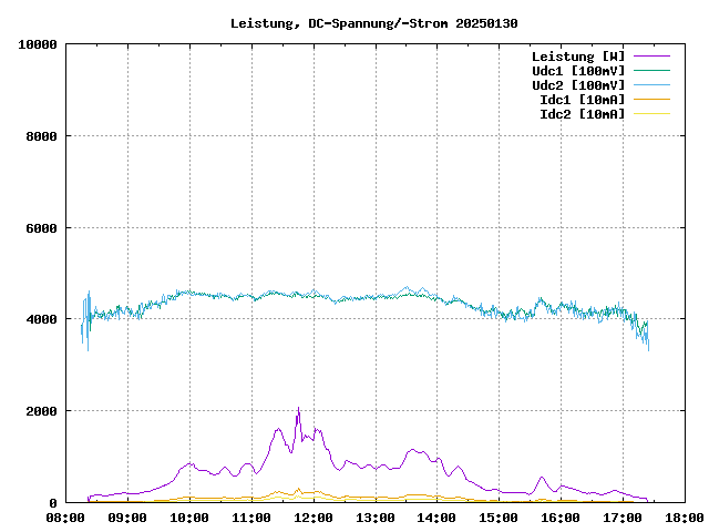 max. Leistung: 2080 W um 11:45:13max. Leistung/Panel: 77 W