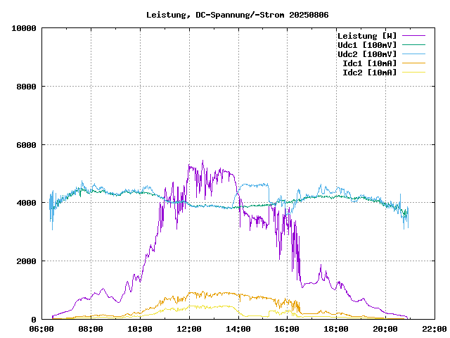 max. Leistung: 5447 W um 12:33:14max. Leistung/Panel: 201.7 W