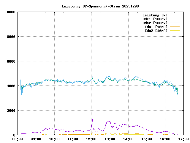 max. Leistung: 1277 W um 12:03:12max. Leistung/Panel: 47.3 W