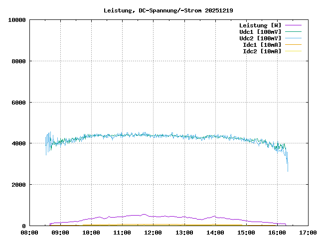 max. Leistung: 566 W um 11:41:12max. Leistung/Panel: 21 W