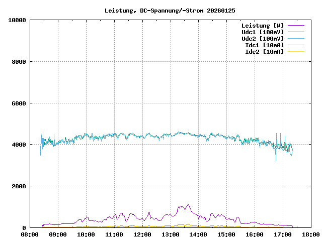 max. Leistung: 1111 W um 13:38:11max. Leistung/Panel: 41.1 W