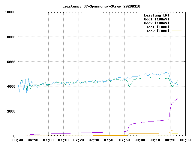 max. Leistung: 3051 W um 08:25:12max. Leistung/Panel: 113 W