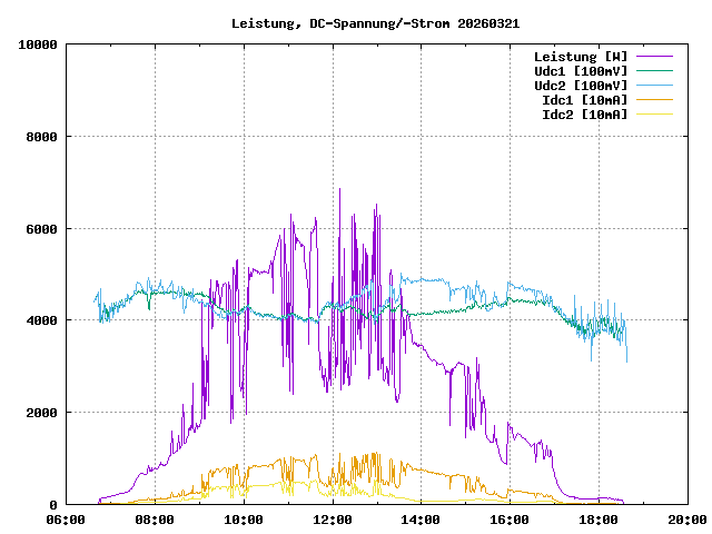 max. Leistung: 6867 W um 12:09:11max. Leistung/Panel: 254.3 W